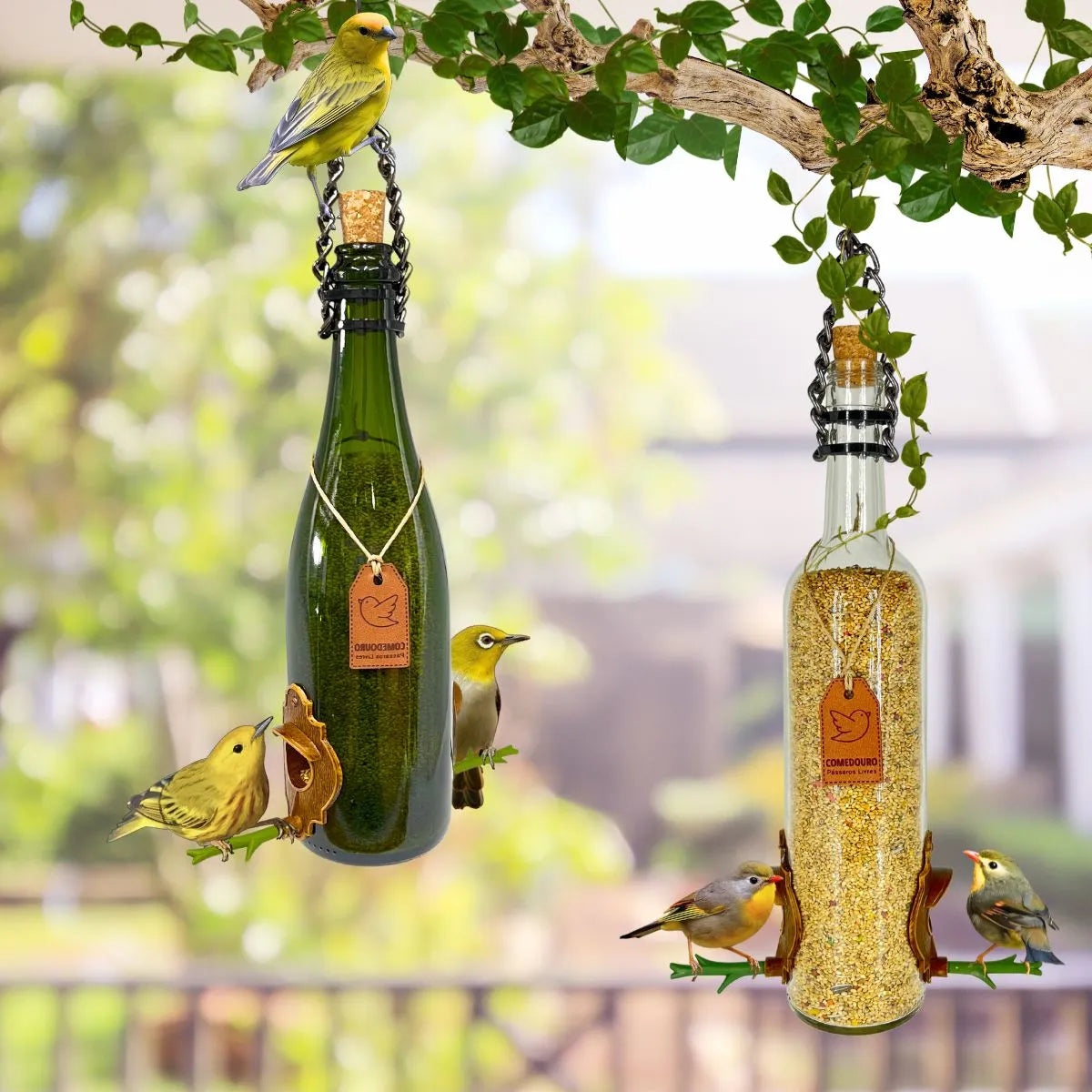 KIT 10 COMEDOUROS PÁSSAROS LIVRES MODELOS DIVERSOS – COMEDOUROS ARTESANAIS SUSTENTÁVEIS DE VIDRO RECICLADO