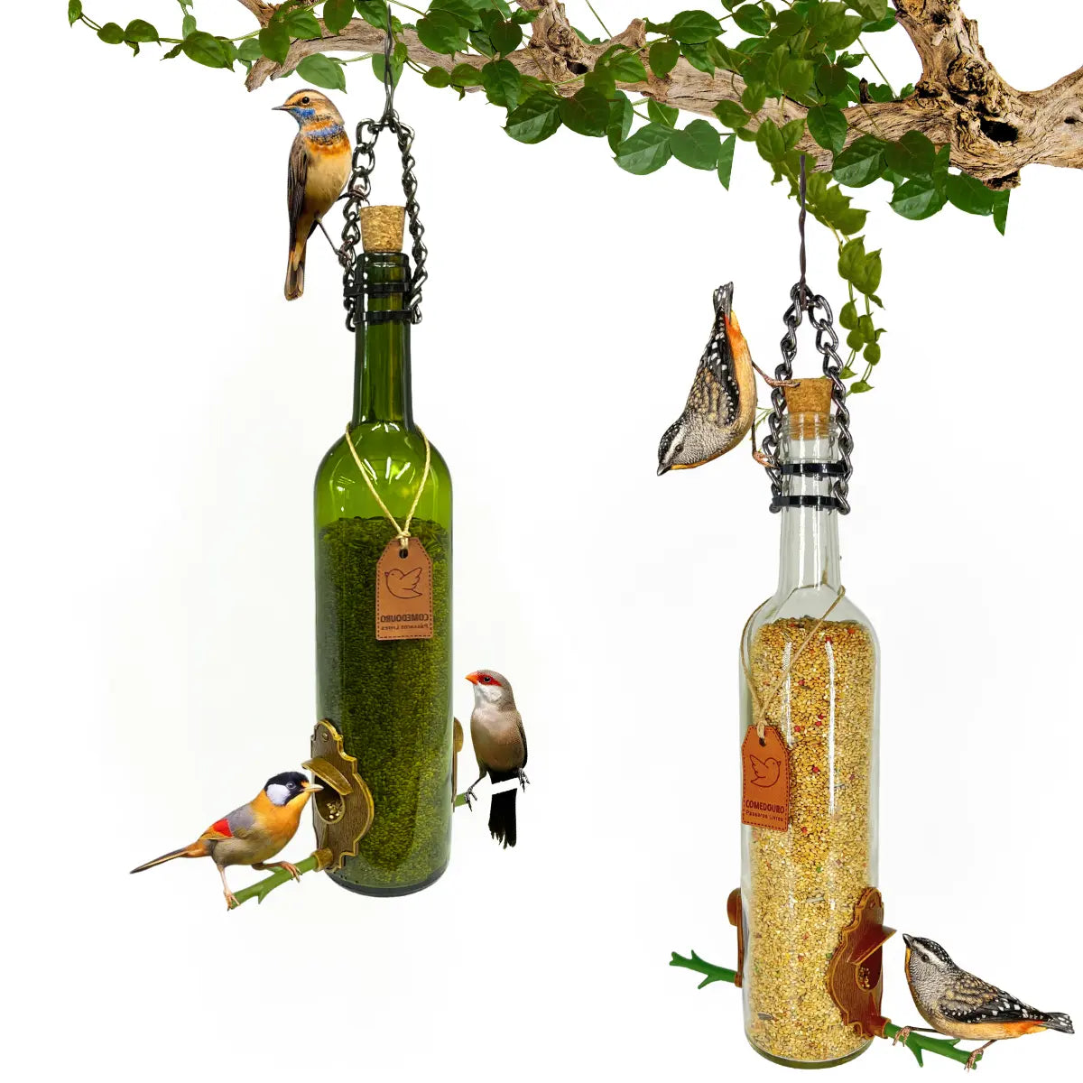 KIT 2 COMEDOUROS PÁSSAROS LIVRES VINHO VERDE E BRANCO – COMEDOUROS ARTESANAIS SUSTENTÁVEIS DE VIDRO RECICLADO
