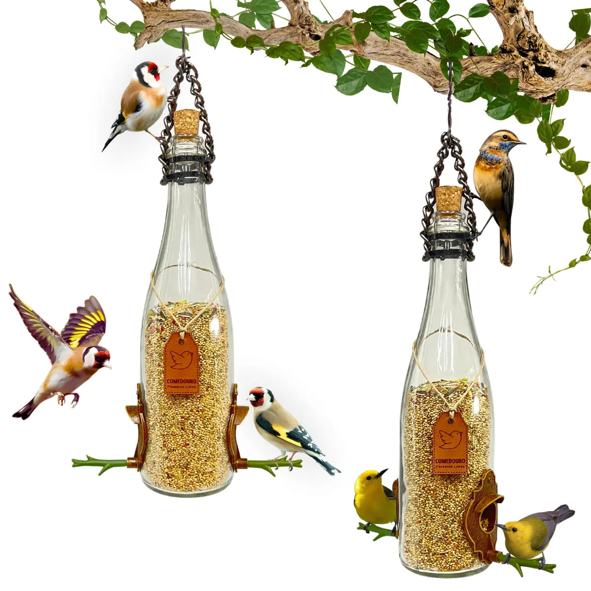 Os Comedouros Pássaros Livres Champanhe Branca Porto do Canto são peças únicas feitas à mão com vidro reciclado, ideal para alimentar os pássaros do seu jardim com estilo, consciência ecológica e funcionalidade real.